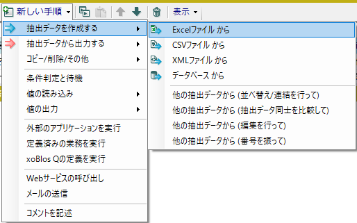 xoBlosクライアントを起動したら、新しい手順(Excelから)を追加します。