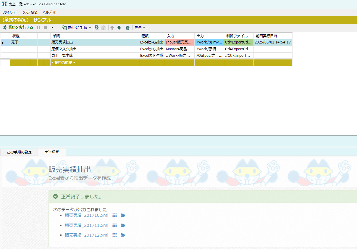 抽出データとは、この後のプロセスで使用するための、加工が容易な「xmlファイル」への変換のことを指しています。例として、「得意先別の複数納品書」を「売上一覧表」の形に組替える手順を作成していきます。