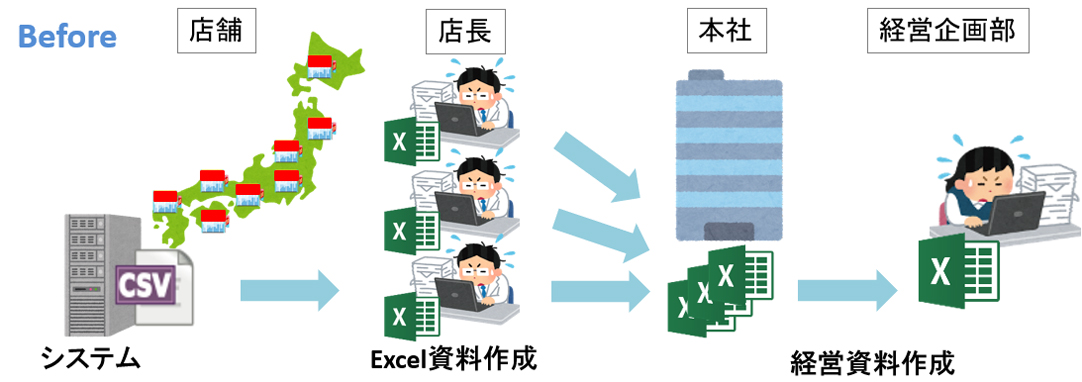 多店舗経営では特に、Excelでの集計や会議資料の作成が担当者の大きな負担になるのが現実です。