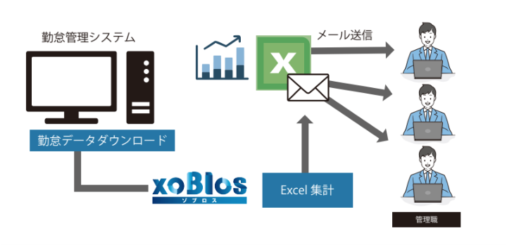 - xoBlosから従業員ごとの差異データを管理職へメール送信
