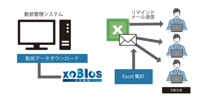 - 対象社員へのリマインドメールをxoBlosが自動送信