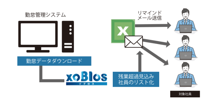 - xoBlosで勤怠データから各従業員の労働時間を自動算出、過重労働の可能性を判断