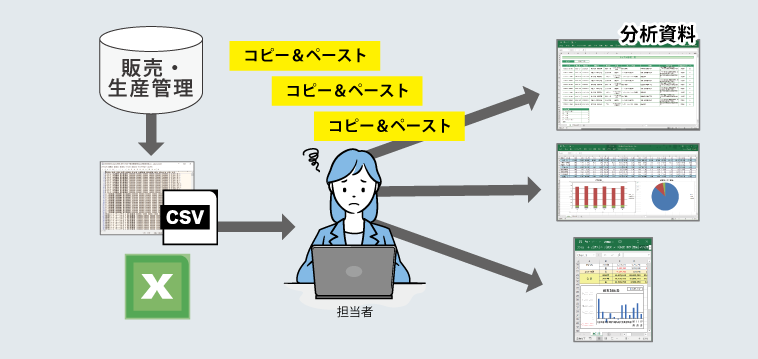 - 必要情報の収集・集計に追われ、分析に時間を割けない